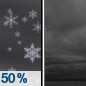 Temperature: 34°F Wind Speed: 15 to 20 mph Wind Direction: W Forecast: A chance of snow. Mostly cloudy, with a high near 34. |