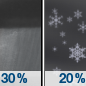 Temperature: 25°F Wind Speed: 10 to 15 mph Wind Direction: NNW Forecast: A chance of rain showers before midnight, then a slight chance of snow showers between midnight and 5am. Mostly cloudy, with a low around 25. North northwest wind 10 to 15 mph. Chance of precipitation is 30%. |