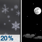 Temperature: 13°F Wind Speed: 0 mph Wind Direction: Forecast: Clear, with a low around 13. Northeast wind around 0 mph. |