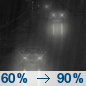 Temperature: 46°F Wind Speed: 12 to 17 mph Wind Direction: S Forecast: Rain after 7pm. Cloudy, with a low around 46. Chance of precipitation is 90%. |