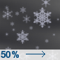 Temperature: 6°F Wind Speed: 5 to 10 mph Wind Direction: NW Forecast: A chance of snow before 11pm, then a slight chance of snow showers between 11pm and 5am. Mostly cloudy, with a low around 6. Wind chill values as low as -5. Northwest wind 5 to 10 mph, with gusts as high as 20 mph. Chance of precipitation is 50%. New snow accumulation of 1 to 3 inches possible. |