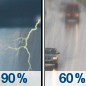 Temperature: 60°F Wind Speed: 9 to 14 mph Wind Direction: SSW Forecast: A chance of rain showers before 7am, then showers and thunderstorms between 7am and 10am, then rain. Mostly cloudy. High near 60, with temperatures falling to around 56 in the afternoon. South southwest wind 9 to 14 mph, with gusts as high as 26 mph. Chance of precipitation is 90%. New rainfall amounts between a tenth and quarter of an inch possible. |
