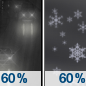 Temperature: 39°F Wind Speed: 6 mph Wind Direction: S Forecast: Rain likely before 1am, then rain and snow likely. Mostly cloudy, with a low around 39. |