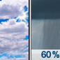 Temperature: 57°F Wind Speed: 0 to 10 mph Wind Direction: S Forecast: Rain showers likely after 1pm. Partly sunny, with a high near 57. South wind 0 to 10 mph. Chance of precipitation is 60%. |
