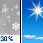 Temperature: 42°F Wind Speed: 0 to 5 mph Wind Direction: W Forecast: A chance of snow showers before 7am. Sunny, with a high near 42. Chance of precipitation is 30%. |