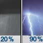 Temperature: 19°F Wind Speed: 14 to 18 mph Wind Direction: NW Forecast: Rain likely. Mostly cloudy, with a low around 19. Chance of precipitation is 60%. |