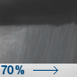Temperature: 36°F Wind Speed: 5 to 10 mph Wind Direction: ESE Forecast: Rain likely. Cloudy, with a low around 36. Chance of precipitation is 70%. |