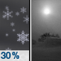 Temperature: 3°F Wind Speed: 0 to 5 mph Wind Direction: E Forecast: A chance of snow. Partly sunny, with a high near 3. |