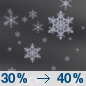 Temperature: 9°F Wind Speed: 15 mph Wind Direction: S Forecast: A chance of snow. Mostly cloudy, with a high near 9. |