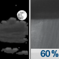 Temperature: 36°F Wind Speed: 6 to 12 mph Wind Direction: SSW Forecast: Rain showers likely after 3am. Partly cloudy, with a low around 36. South southwest wind 6 to 12 mph. Chance of precipitation is 60%. |
