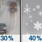 Temperature: 31°F Wind Speed: 10 to 15 mph Wind Direction: W Forecast: A slight chance of snow after 11pm. Partly cloudy, with a low around 31. |