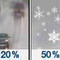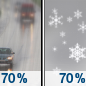 Temperature: 39°F Wind Speed: 7 mph Wind Direction: W Forecast: A chance of snow. Partly sunny, with a high near 39. |