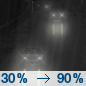 Temperature: 35°F Wind Speed: 10 mph Wind Direction: S Forecast: Rain after 9pm. Mostly cloudy, with a low around 35. Chance of precipitation is 90%. |