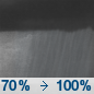 Temperature: 42°F Wind Speed: 8 to 22 mph Wind Direction: S Forecast: Rain showers after 7pm. Cloudy. Low around 42, with temperatures rising to around 53 overnight. South wind 8 to 22 mph, with gusts as high as 37 mph. Chance of precipitation is 100%. New rainfall amounts between a half and three quarters of an inch possible. |