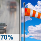 Temperature: 53°F Wind Speed: 20 to 32 mph Wind Direction: W Forecast: Rain likely before 10am. Mostly sunny, with a high near 53. West wind 20 to 32 mph, with gusts as high as 53 mph. Chance of precipitation is 70%. New rainfall amounts less than a tenth of an inch possible. |