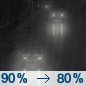 Temperature: 41°F Wind Speed: 8 to 14 mph Wind Direction: S Forecast: Rain. Cloudy, with a low around 41. Chance of precipitation is 90%. |
