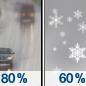 Temperature: 31°F Wind Speed: 12 mph Wind Direction: SW Forecast: A chance of snow. Mostly cloudy, with a high near 31. Chance of precipitation is 40%. |