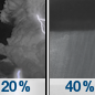 Temperature: 47°F Wind Speed: 5 to 25 mph Wind Direction: W Forecast: A slight chance of rain showers before 9pm, then a slight chance of showers and thunderstorms between 9pm and midnight, then a chance of rain showers and patchy fog. Mostly cloudy. Low around 47, with temperatures rising to around 50 overnight. West wind 5 to 25 mph, with gusts as high as 35 mph. Chance of precipitation is 40%. New rainfall amounts less than a tenth of an inch possible. |