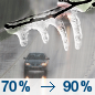 Temperature: 37°F Wind Speed: 5 to 12 mph Wind Direction: SE Forecast: Rain showers and freezing rain likely. Cloudy, with a high near 37. Chance of precipitation is 90%. |