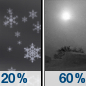 Temperature: 39°F Wind Speed: 15 to 24 mph Wind Direction: S Forecast: A slight chance of rain and snow after 5pm. Partly sunny, with a high near 39. South wind 15 to 24 mph. Chance of precipitation is 20%. |