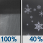 Temperature: 35°F Wind Speed: 2 mph Wind Direction: NE Forecast: A chance of rain. Mostly cloudy, with a low around 35. Chance of precipitation is 30%. |