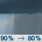 Temperature: 65°F Wind Speed: 5 to 10 mph Wind Direction: SE Forecast: Rain showers. Cloudy, with a high near 65. Southeast wind 5 to 10 mph. Chance of precipitation is 90%. New rainfall amounts between a tenth and quarter of an inch possible. |