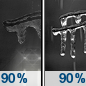 Temperature: 28°F Wind Speed: 6 to 12 mph Wind Direction: S Forecast: A chance of rain showers before 7pm, then freezing rain. Cloudy, with a low around 28. Chance of precipitation is 90%. |