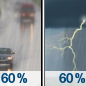 Temperature: 65°F Wind Speed: 6 to 9 mph Wind Direction: SW Forecast: Rain likely before 1pm, then a chance of rain and a slight chance of thunderstorms. Cloudy, with a high near 65. Chance of precipitation is 60%. |