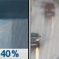 Temperature: 50°F Wind Speed: 3 to 7 mph Wind Direction: W Forecast: A chance of rain and a slight chance of thunderstorms. Mostly cloudy, with a low around 50. Chance of precipitation is 40%. |