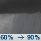 Temperature: 44°F Wind Speed: 8 to 22 mph Wind Direction: S Forecast: Rain showers after 7pm. Cloudy, with a low around 44. Chance of precipitation is 90%. |