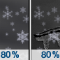 Temperature: 20°F Wind Speed: 3 mph Wind Direction: E Forecast: Snow before 1am, then snow likely and a slight chance of freezing rain. Cloudy, with a low around 20. Chance of precipitation is 80%. |
