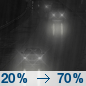 Temperature: 40°F Wind Speed: 2 to 7 mph Wind Direction: SSE Forecast: Rain likely. Mostly cloudy, with a low around 40. South southeast wind 2 to 7 mph. Chance of precipitation is 70%. |