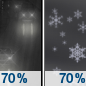 Temperature: 40°F Wind Speed: 6 mph Wind Direction: SSW Forecast: Rain likely before 5am, then rain and snow likely. Mostly cloudy, with a low around 40. |