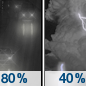 Temperature: 42°F Wind Speed: 10 mph Wind Direction: SW Forecast: Rain before midnight, then a chance of rain and a slight chance of thunderstorms. Mostly cloudy, with a low around 42. Chance of precipitation is 80%. |