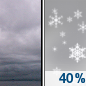 Temperature: 39°F Wind Speed: 2 to 6 mph Wind Direction: E Forecast: A chance of rain and snow showers after noon. Cloudy, with a high near 39. East wind 2 to 6 mph. |