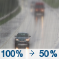 Temperature: 40°F Wind Speed: 6 to 14 mph Wind Direction: S Forecast: Rain after 7pm. Cloudy, with a low around 40. Chance of precipitation is 100%. |