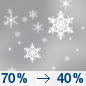 Temperature: 34°F Wind Speed: 13 to 20 mph Wind Direction: W Forecast: Snow likely. Mostly cloudy, with a high near 34. Chance of precipitation is 70%. New snow accumulation of less than one inch possible. |