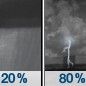 Temperature: 55°F Wind Speed: 5 mph Wind Direction: SW Forecast: A chance of rain showers between 9pm and 3am, then showers and thunderstorms. Mostly cloudy, with a low around 55. Southwest wind around 5 mph. Chance of precipitation is 80%. New rainfall amounts less than a tenth of an inch possible. |