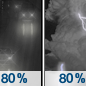 Temperature: 44°F Wind Speed: 5 to 10 mph Wind Direction: SW Forecast: Rain before 1am, then a chance of rain and a slight chance of thunderstorms. Mostly cloudy, with a low around 44. Chance of precipitation is 80%. |