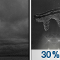 Temperature: 30°F Wind Speed: 2 mph Wind Direction: SW Forecast: Mostly cloudy, with a low around 30. Southwest wind around 2 mph. |