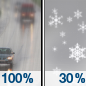Temperature: 31°F Wind Speed: 10 to 16 mph Wind Direction: S Forecast: Rain after 1am. Mostly cloudy. Low around 31, with temperatures rising to around 41 overnight. South wind 10 to 16 mph, with gusts as high as 28 mph. Chance of precipitation is 80%. New rainfall amounts less than a tenth of an inch possible. |
