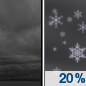 Temperature: 36°F Wind Speed: 6 to 9 mph Wind Direction: SW Forecast: A chance of snow between 7am and 1pm, then a chance of rain and snow. Mostly cloudy, with a high near 36. Chance of precipitation is 40%. |