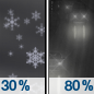 Temperature: 21°F Wind Speed: 5 to 10 mph Wind Direction: SW Forecast: A chance of snow after 8pm. Mostly cloudy, with a low around 21. Chance of precipitation is 30%. |