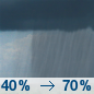 Temperature: 50°F Wind Speed: 2 mph Wind Direction: E Forecast: A chance of rain after 2am. Mostly cloudy, with a low around 50. East wind around 2 mph. Chance of precipitation is 30%. New rainfall amounts less than a tenth of an inch possible. |