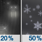 Temperature: 35°F Wind Speed: 14 mph Wind Direction: N Forecast: A chance of snow before 7am. Mostly sunny, with a high near 35. Chance of precipitation is 30%. |