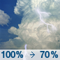 Temperature: 56°F Wind Speed: 20 to 25 mph Wind Direction: SW Forecast: Rain and a slight chance of thunderstorms before 7am, then showers and thunderstorms likely between 7am and 1pm. Partly sunny, with a high near 56. Southwest wind 20 to 25 mph, with gusts as high as 45 mph. Chance of precipitation is 100%. New rainfall amounts between a half and three quarters of an inch possible. |