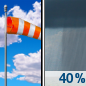 Temperature: 53°F Wind Speed: 16 to 26 mph Wind Direction: WSW Forecast: A chance of rain showers after 5pm. Mostly sunny, with a high near 53. West southwest wind 16 to 26 mph, with gusts as high as 40 mph. Chance of precipitation is 40%. |