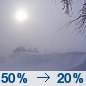 Temperature: -12°F Wind Speed: 8 mph Wind Direction: NW Forecast: A slight chance of snow. Mostly cloudy, with a low around -12. Northwest wind around 8 mph. |