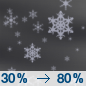 Temperature: 37°F Wind Speed: 7 to 10 mph Wind Direction: SW Forecast: Snow. Mostly cloudy, with a high near 37. Chance of precipitation is 80%. New snow accumulation of less than half an inch possible. |