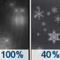 Temperature: 28°F Wind Speed: 15 to 21 mph Wind Direction: W Forecast: A slight chance of snow. Mostly cloudy, with a high near 28. West wind 15 to 21 mph, with gusts as high as 38 mph. Chance of precipitation is 20%. New snow accumulation of less than half an inch possible. |
